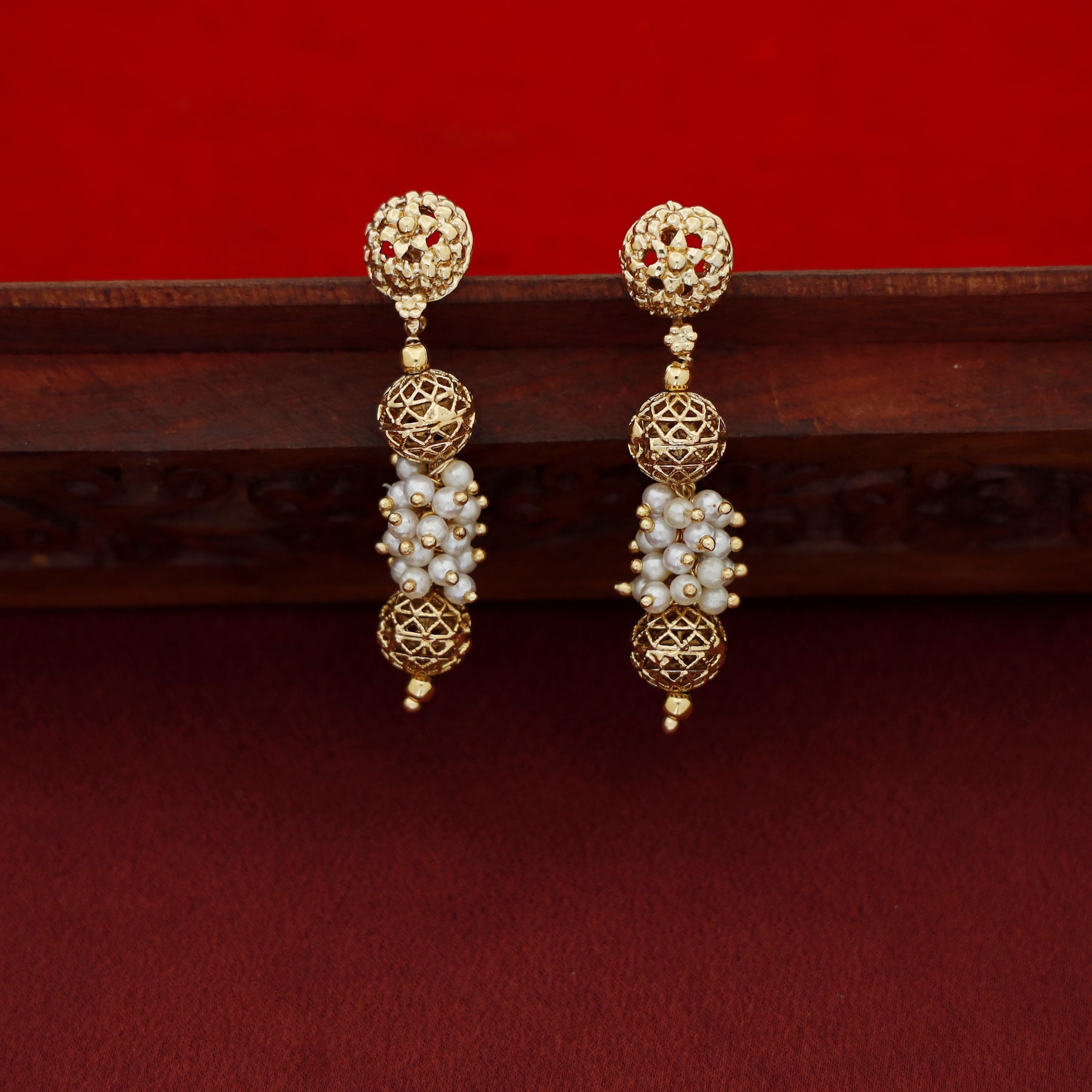 Sheba Golden Ball Cluster Pearl Neckpiece With Earring