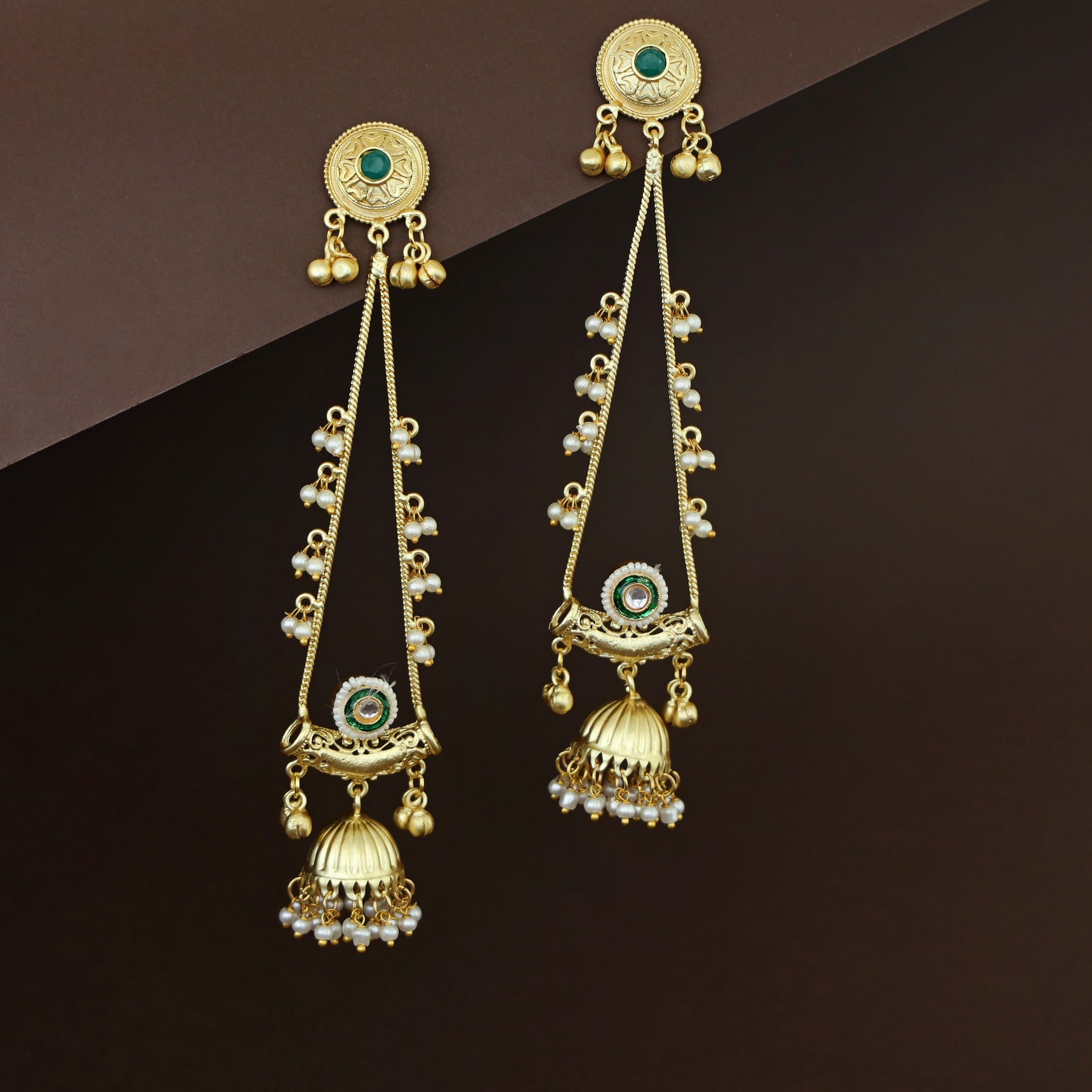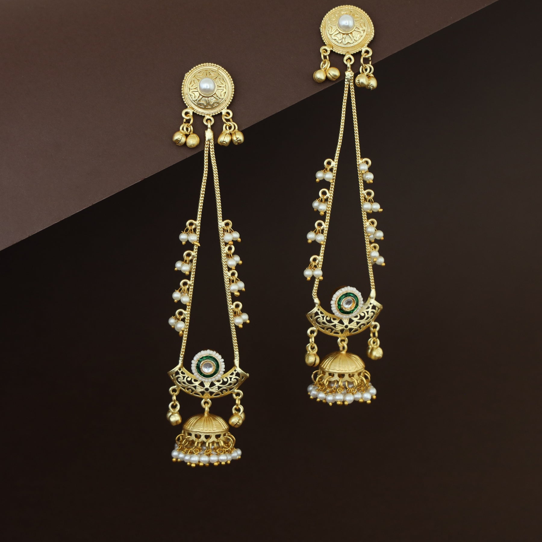 Baisakhi Ghunguroo Pearl Kashmiri Hanging Jhumka