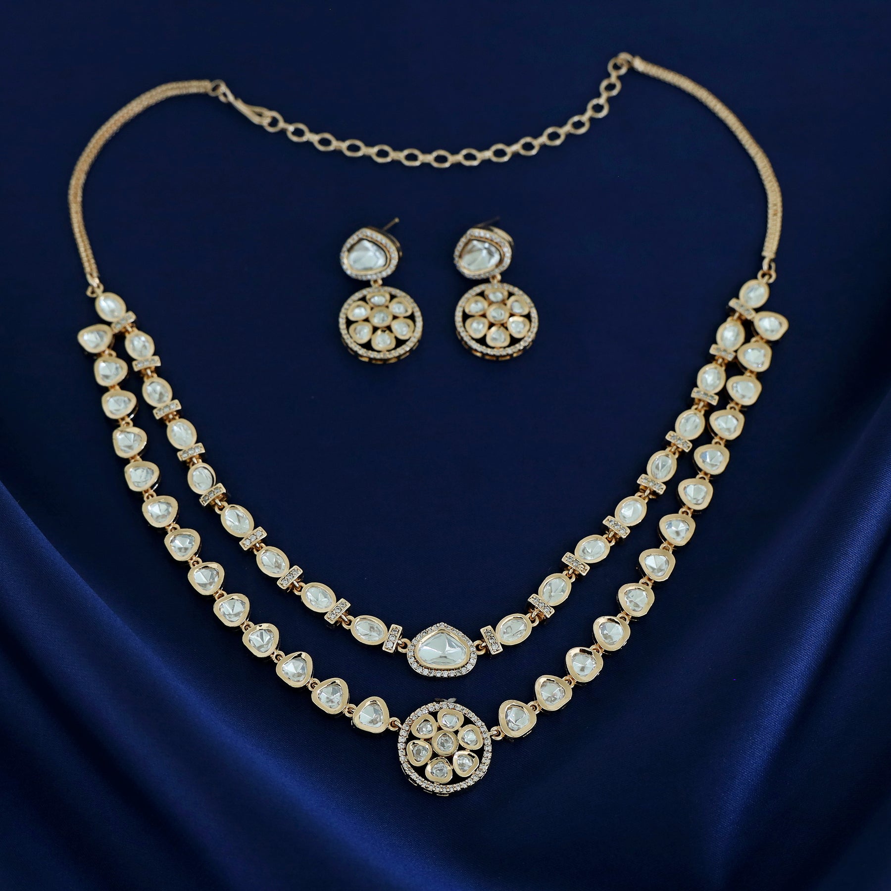 Premium Asael 2 Layer Kundan Flower Neckpiece With Earring