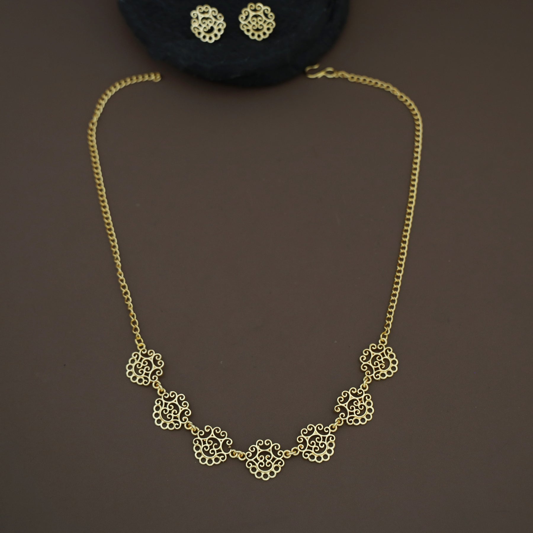Golden Niralika Filigree Short Neckpiece/Choker with Earring