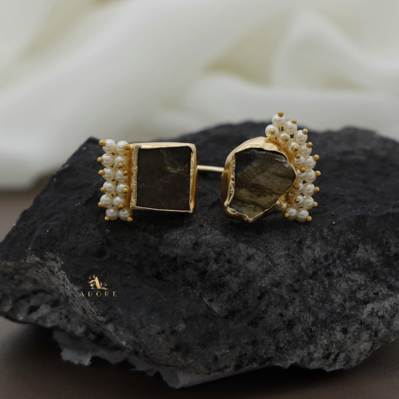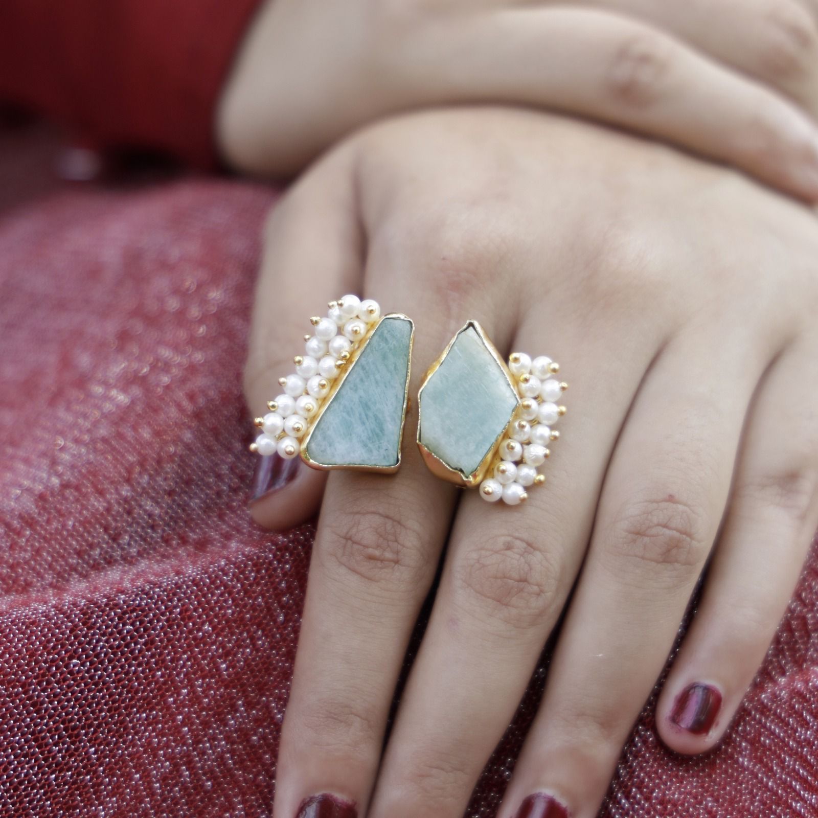 Heidi Raw Stone Cluster Pearl Ring