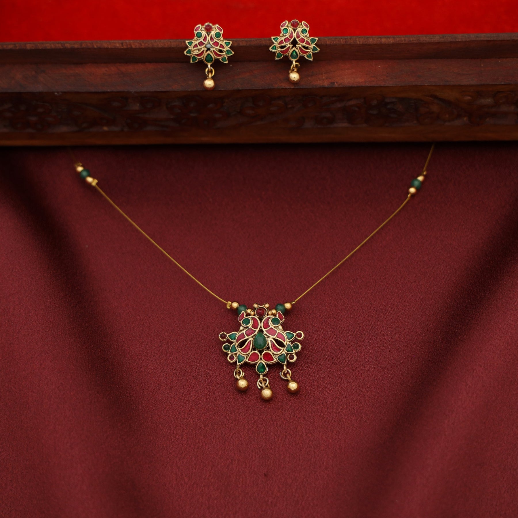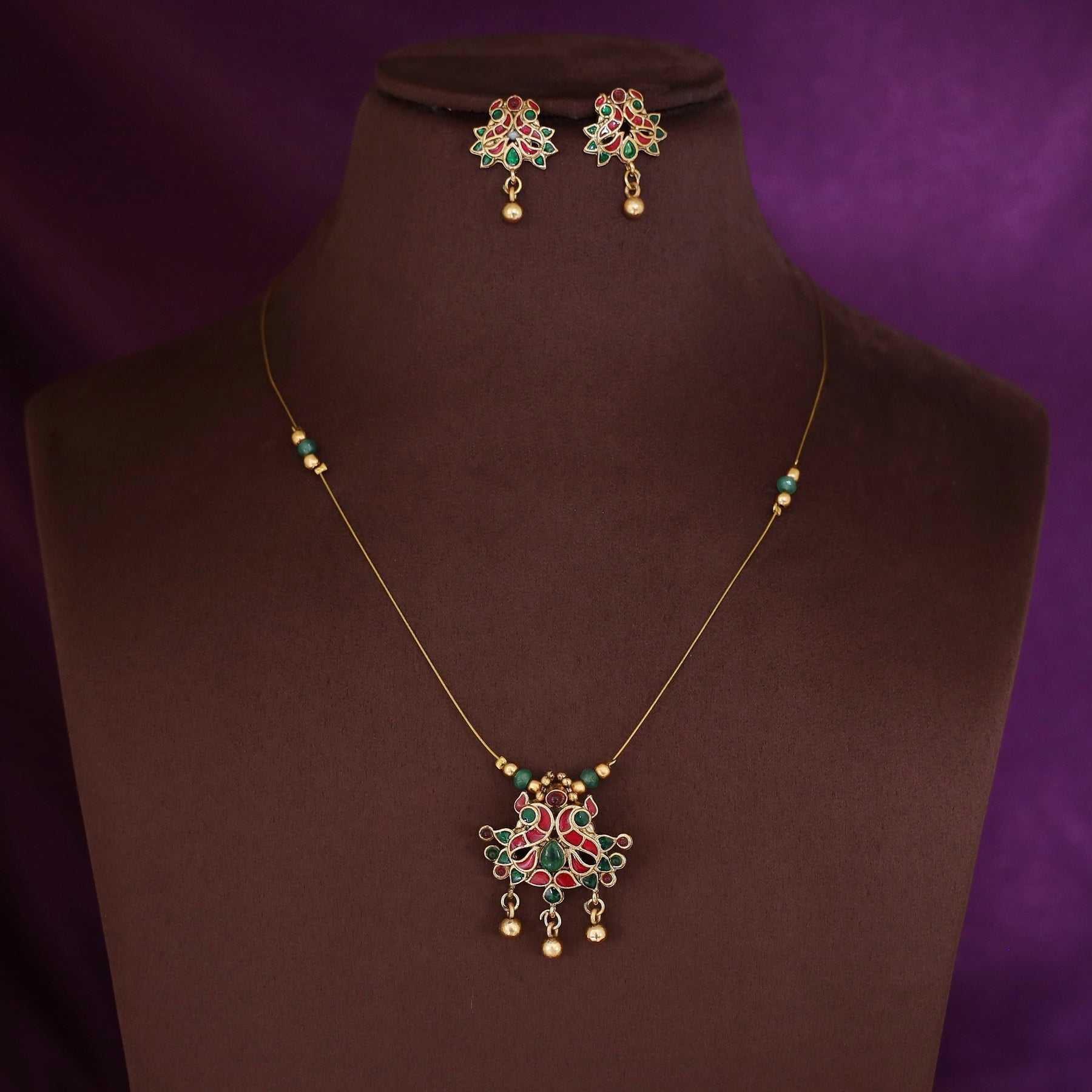 Yamini Mayura Enamel String Neckpiece with Stud