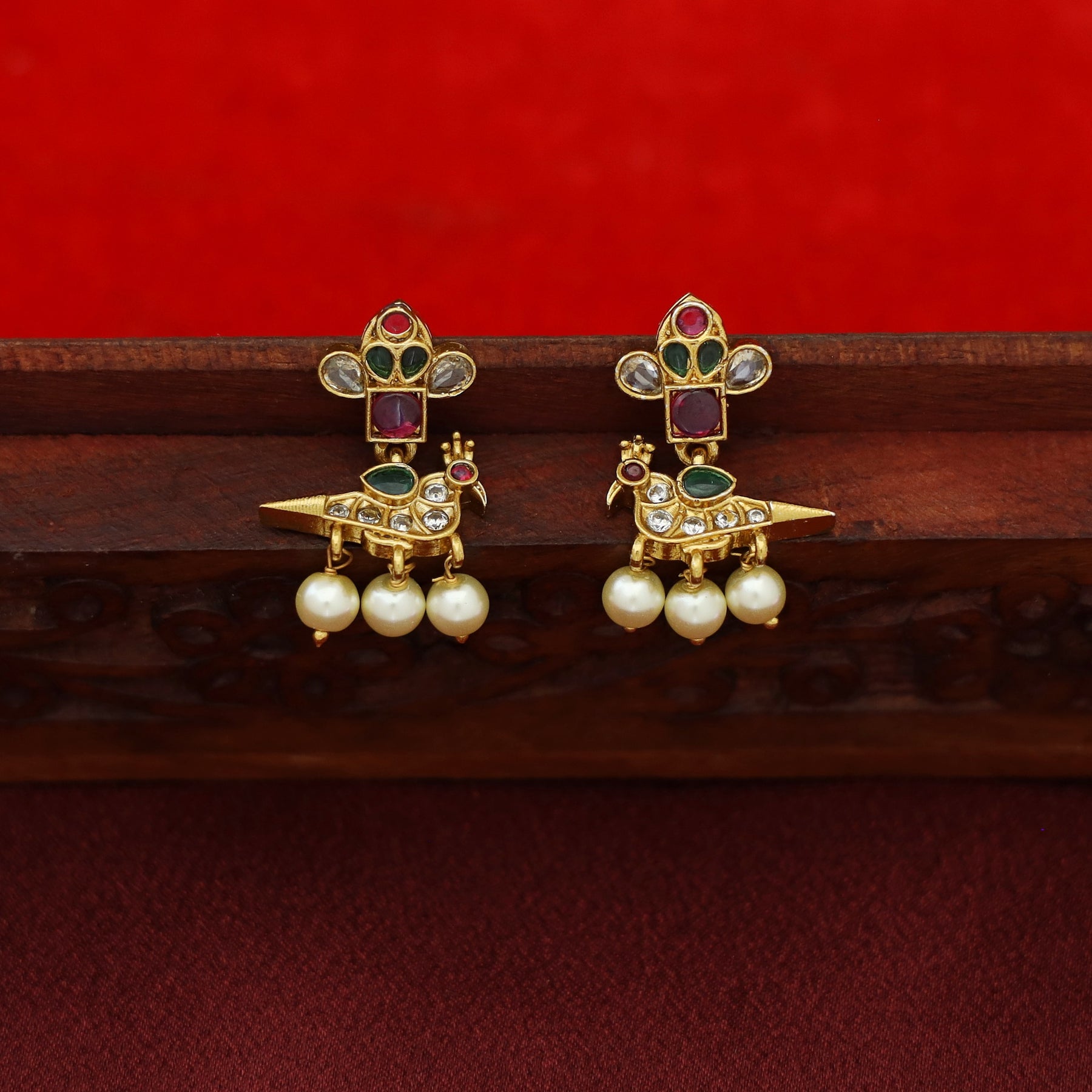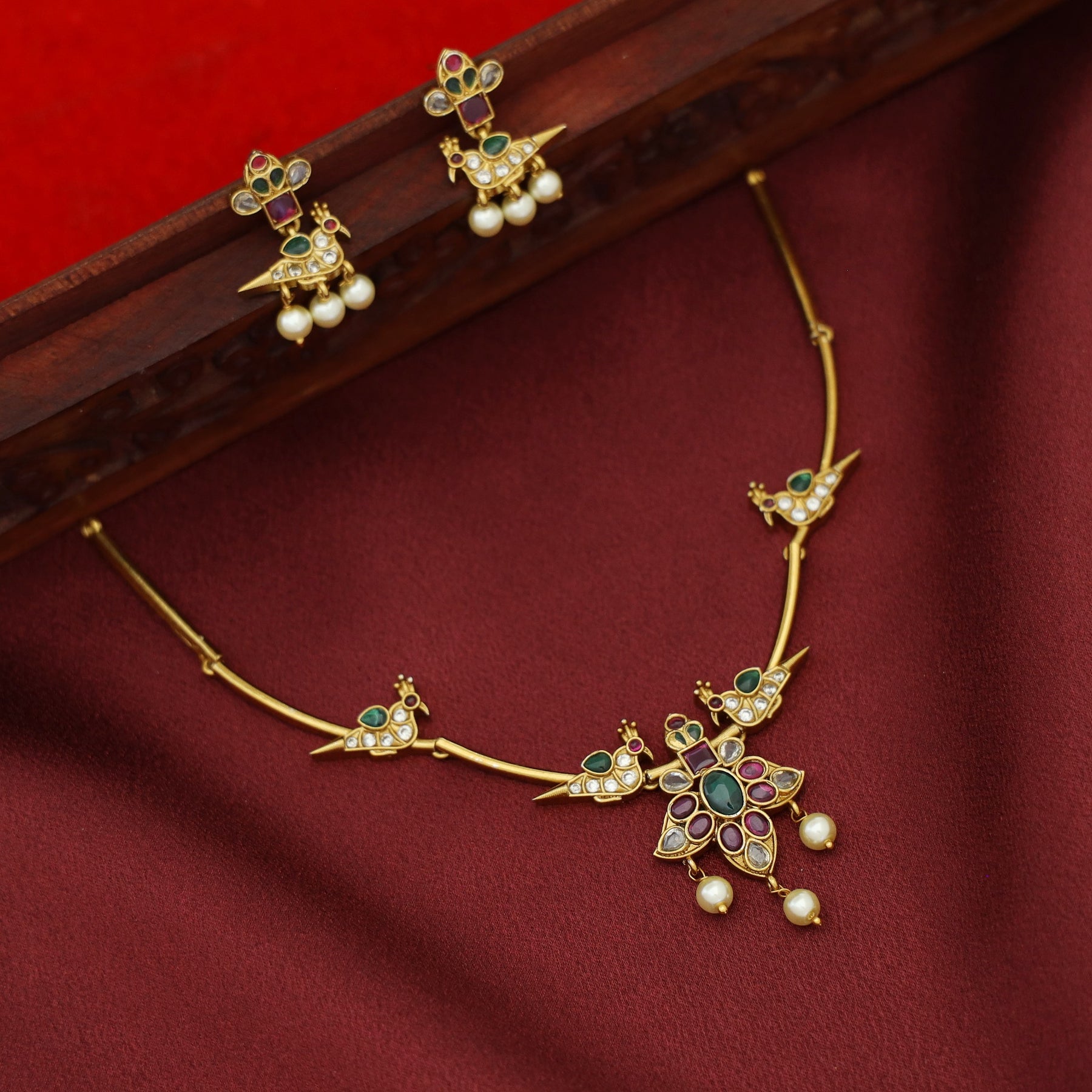 Sripadma Bird Pearl Stiff Neckpiece with Earring