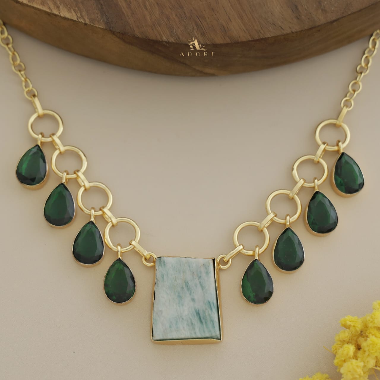 Golden Raw Stone + Round Glossy Drops Neckpiece