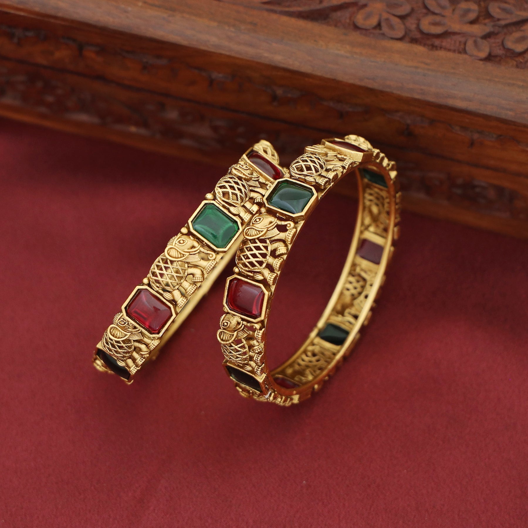 Adrisa Gajavanthi Kemp Stone Bangle (Set Of 2)