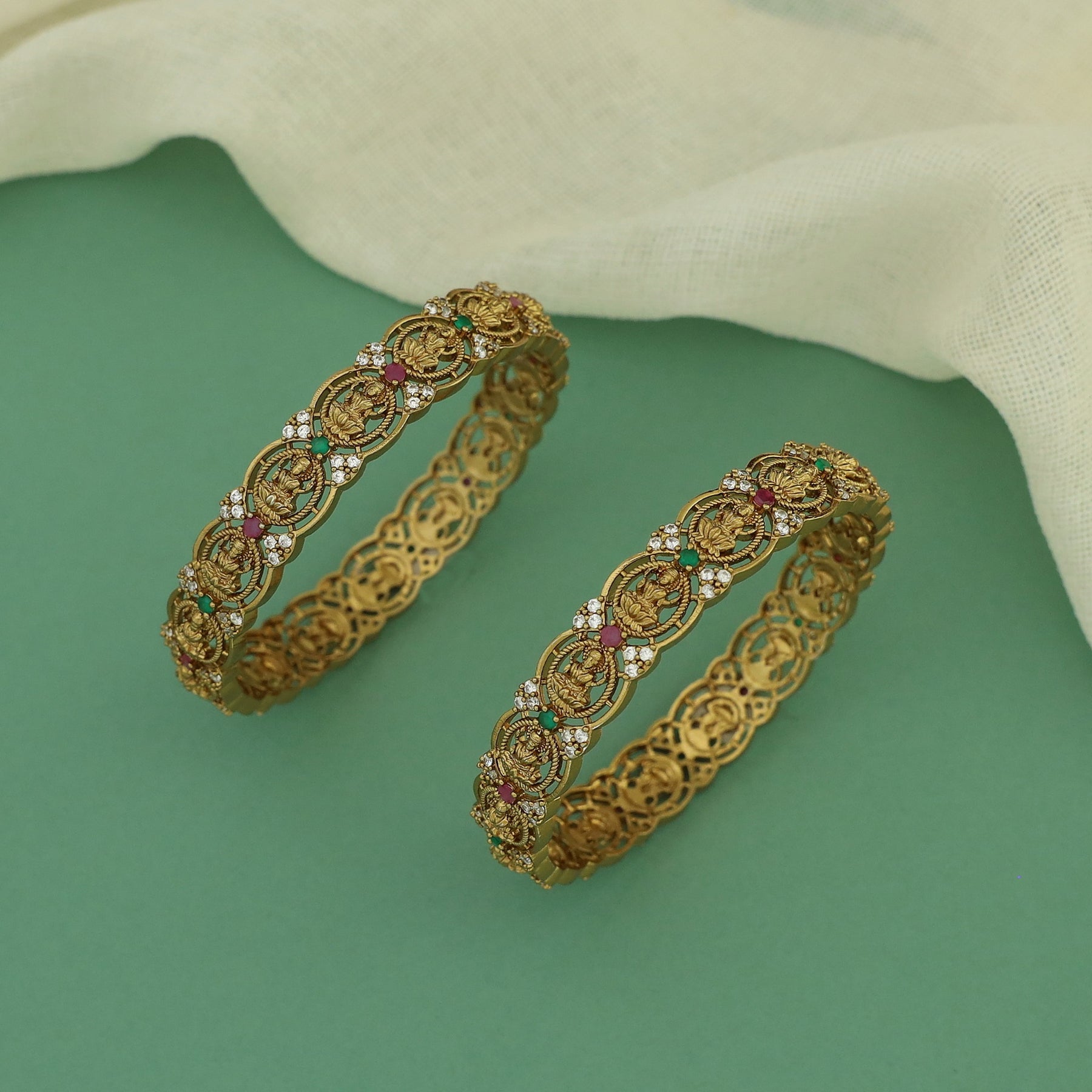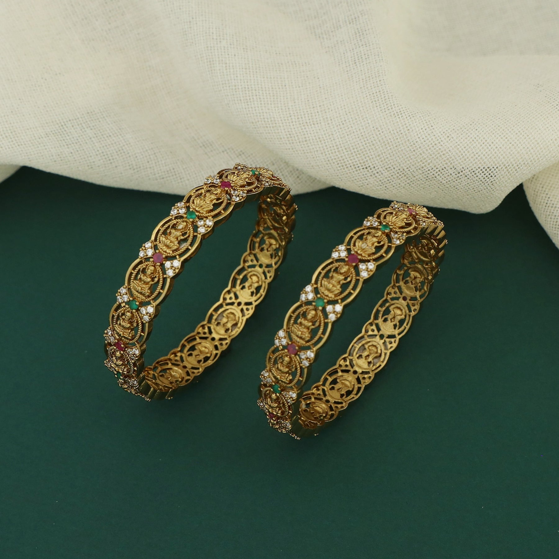 Saharsha Oval Lekshmi AD Stone Bangle (Set Of 2)