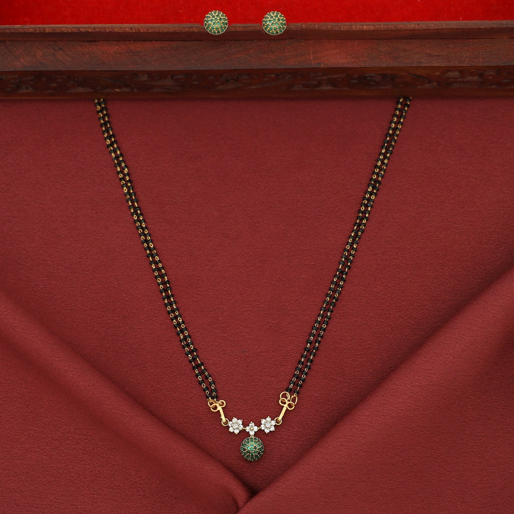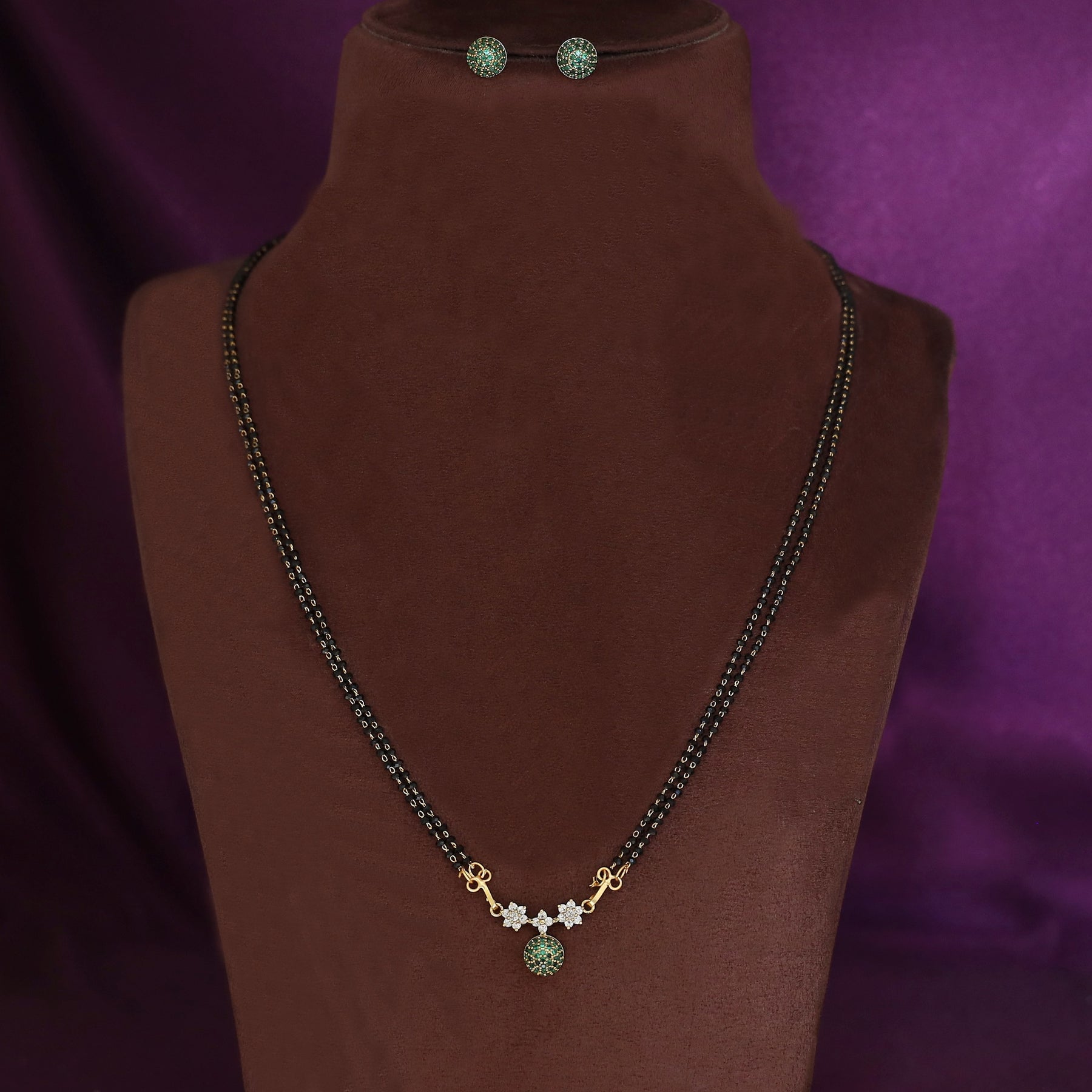 Dayanita Tri Flower AD Stone Circle Mangalsutra With Stud