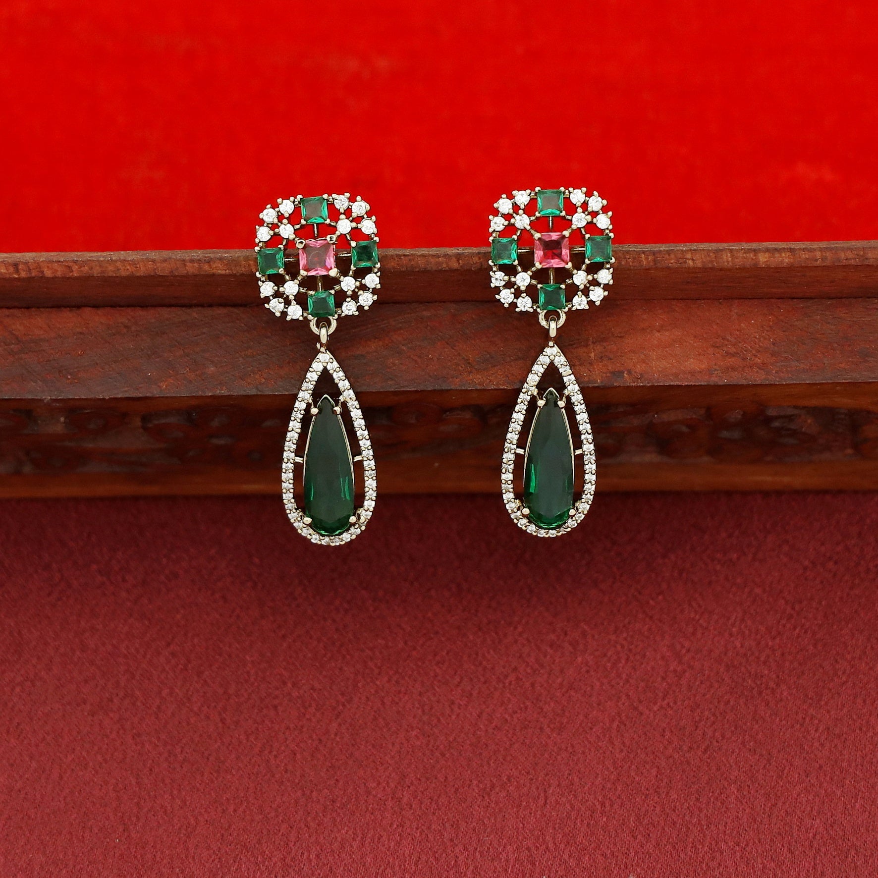 Arunika AD Stone Rectangle Drop Glossy Short Neckpiece With Earring