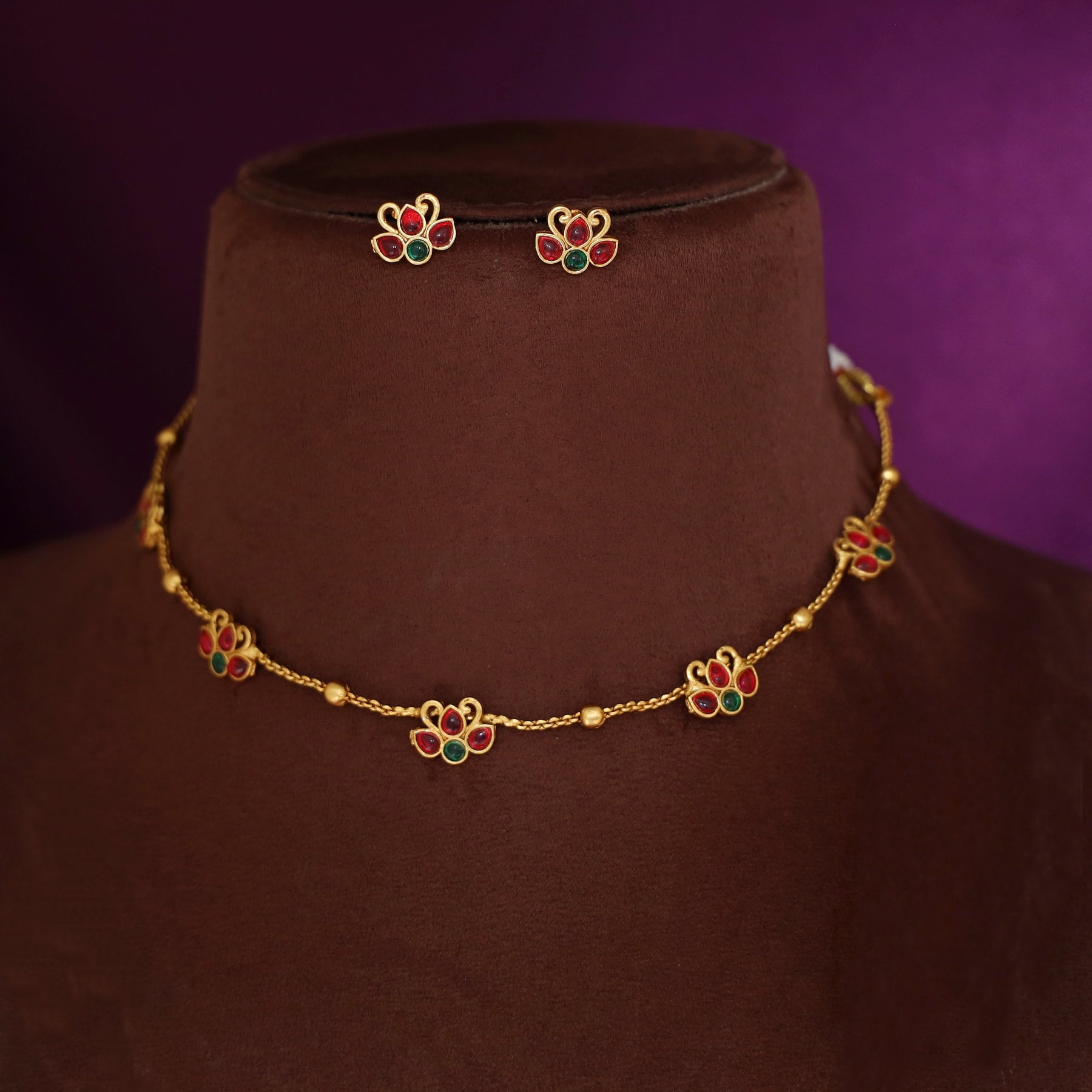 Haniya 5 Lotus Ball Short Neckpiece With Stud
