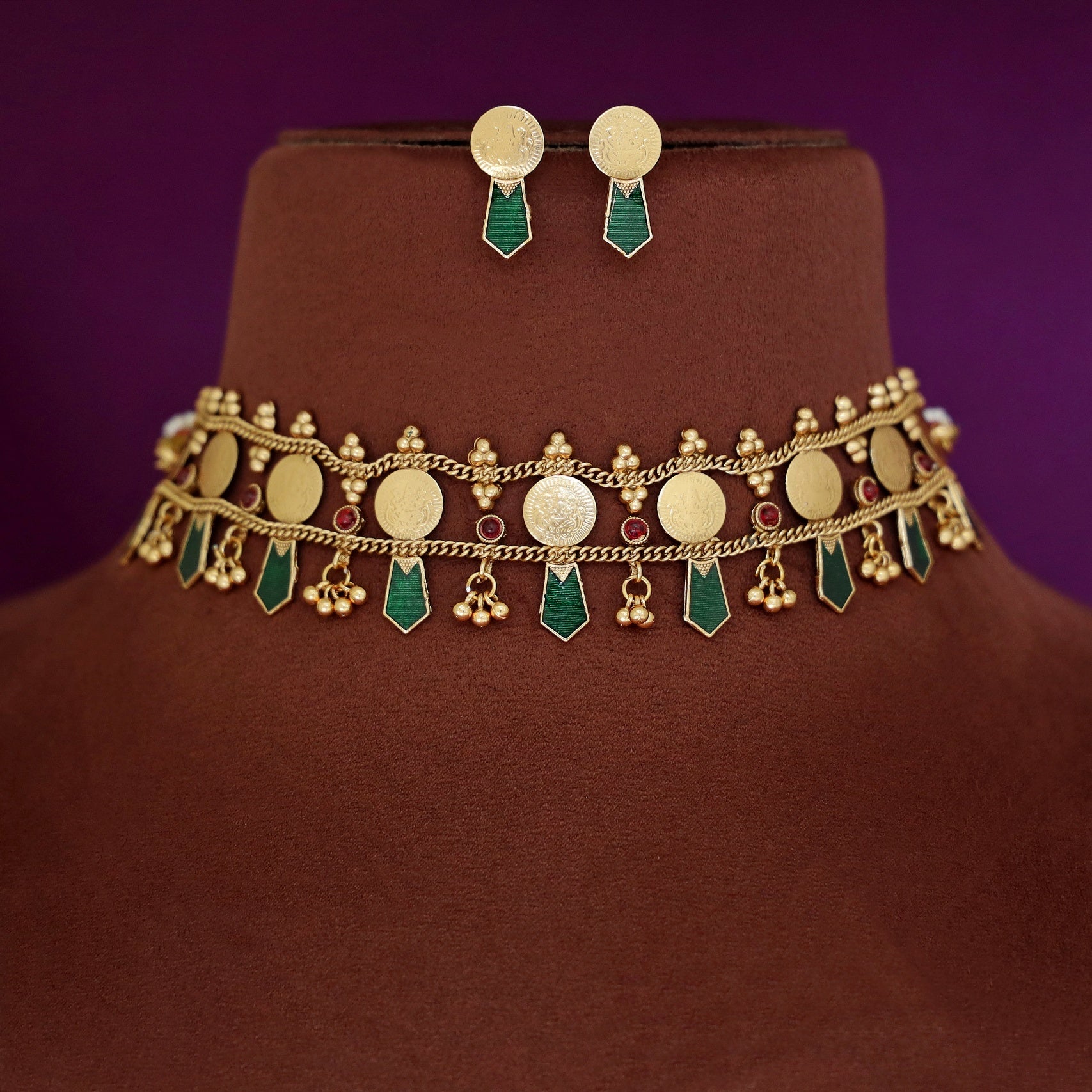 Sridha 2 Layer Kashi Palakka Enamel Choker With Earring