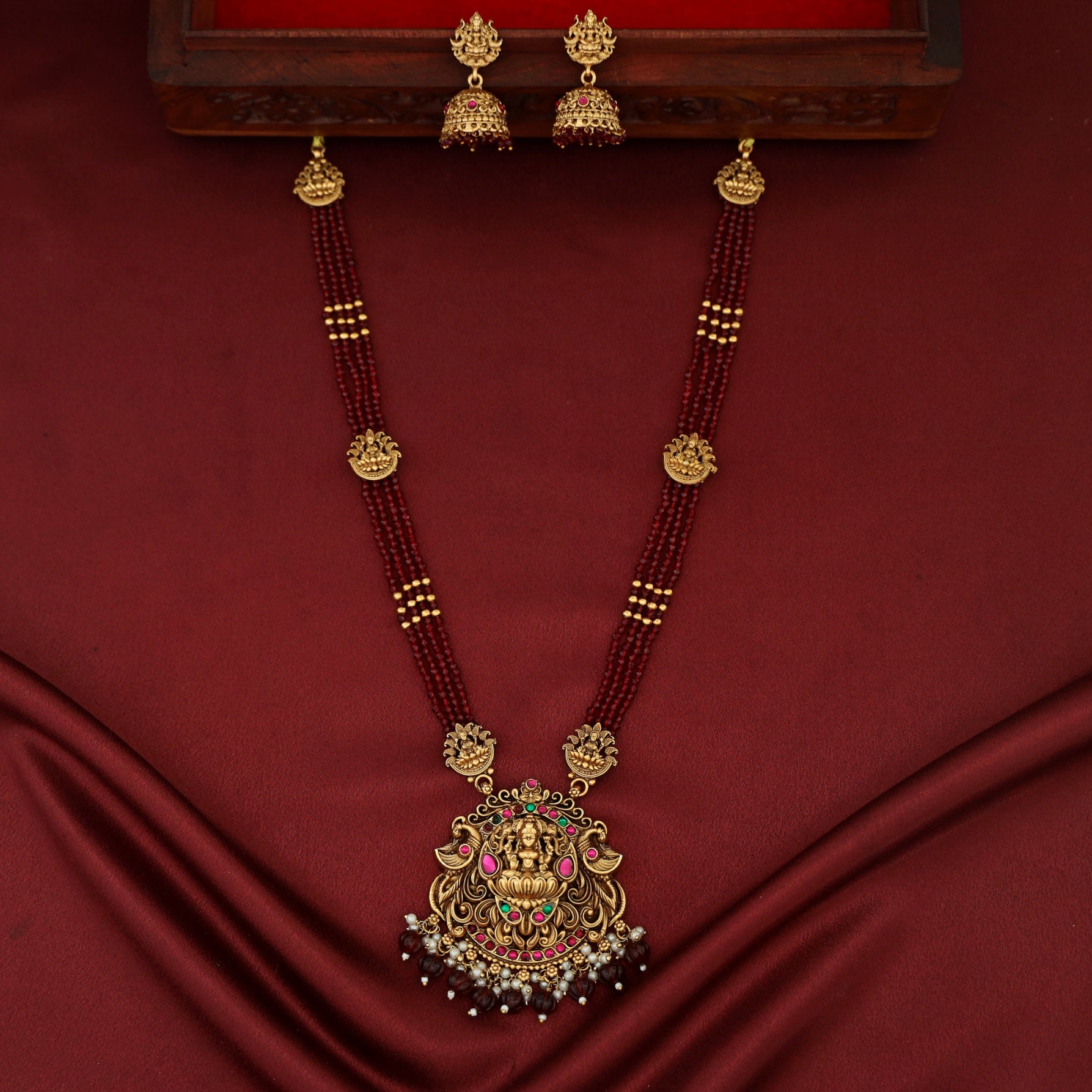 Aishani Devi 4 Layer Beaded Long Haram Neckpiece With Earring