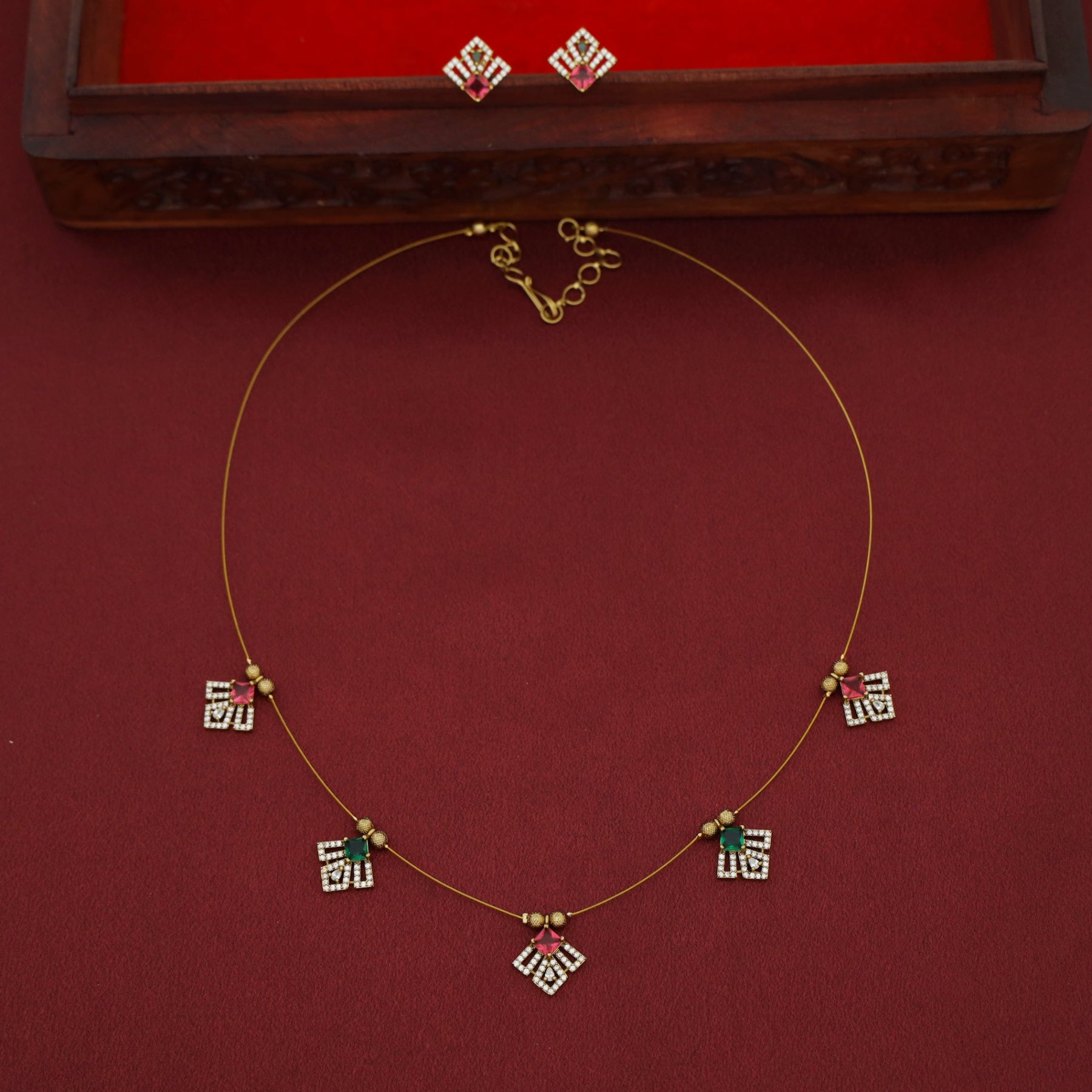 Aadira AD Stone String Neckpiece With Earring