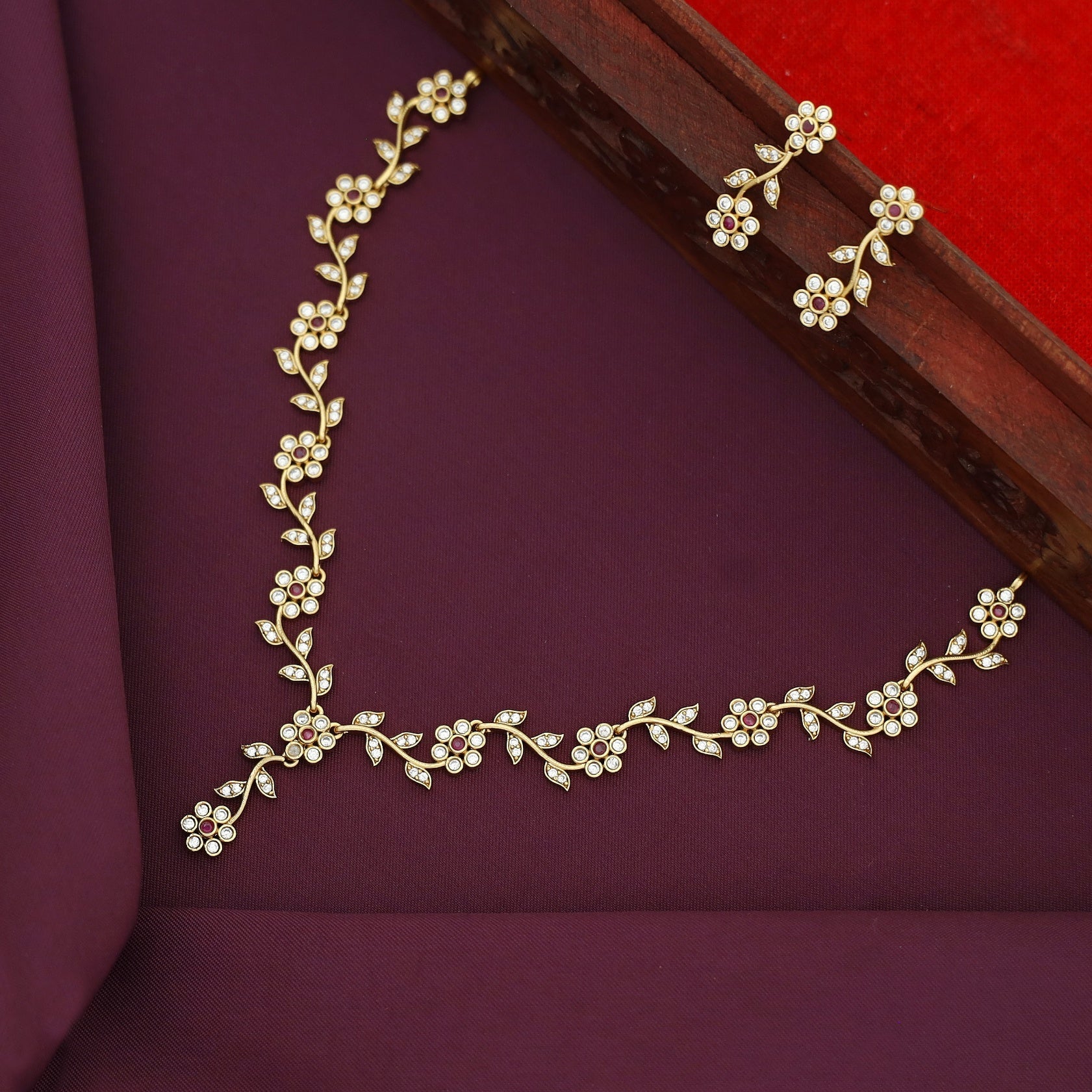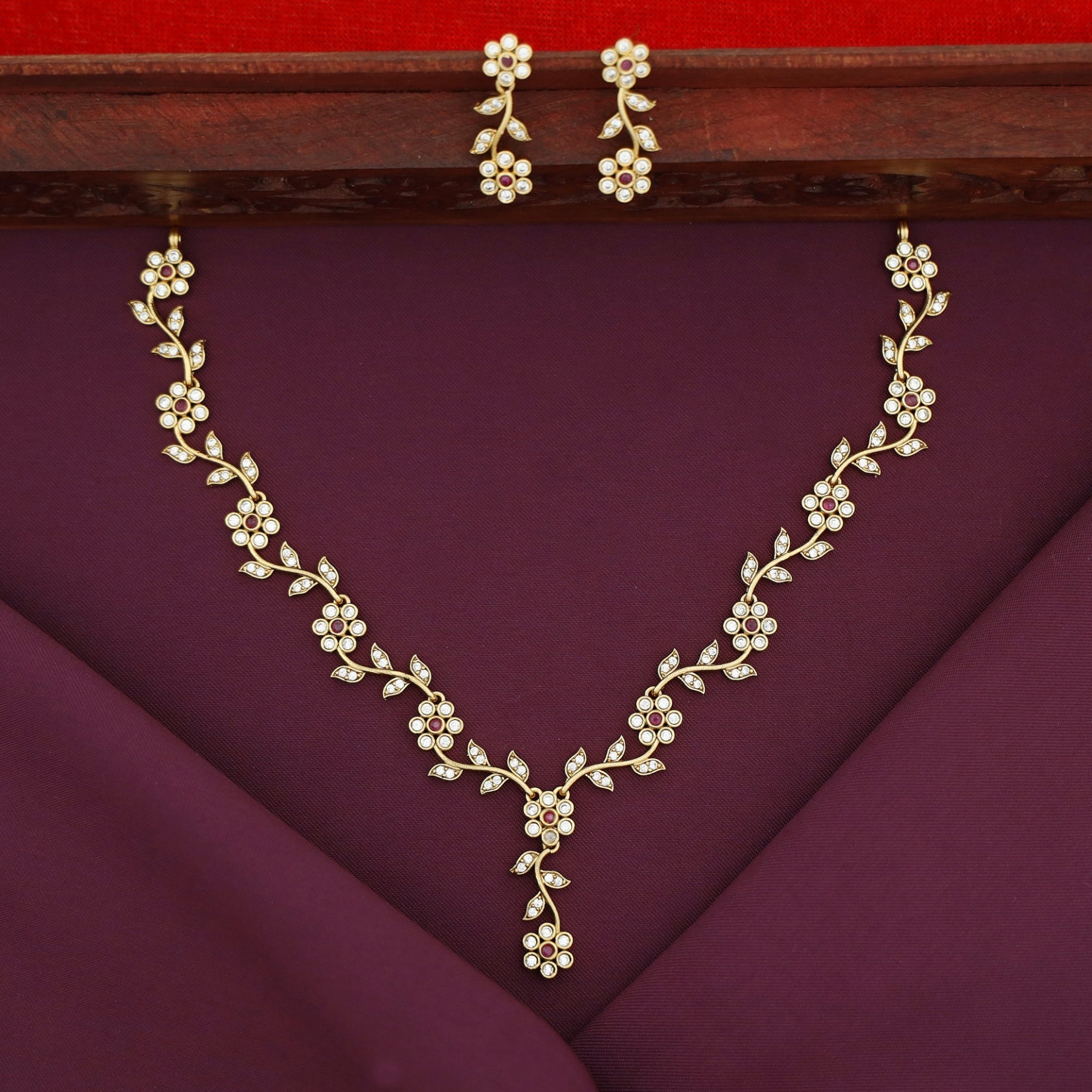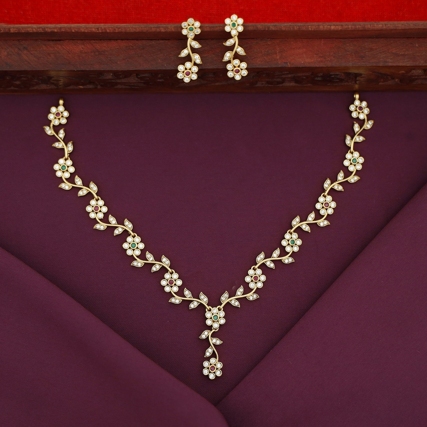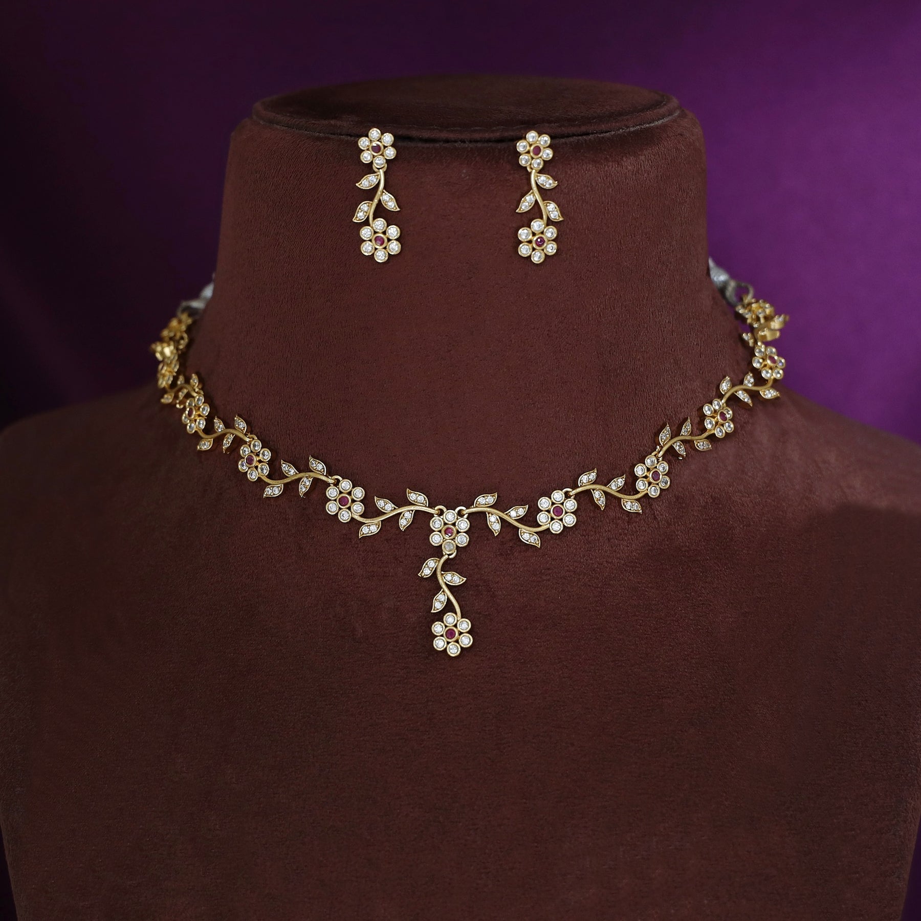Aanchal Stone Flower & Leaf Short Neckpiece With Earring