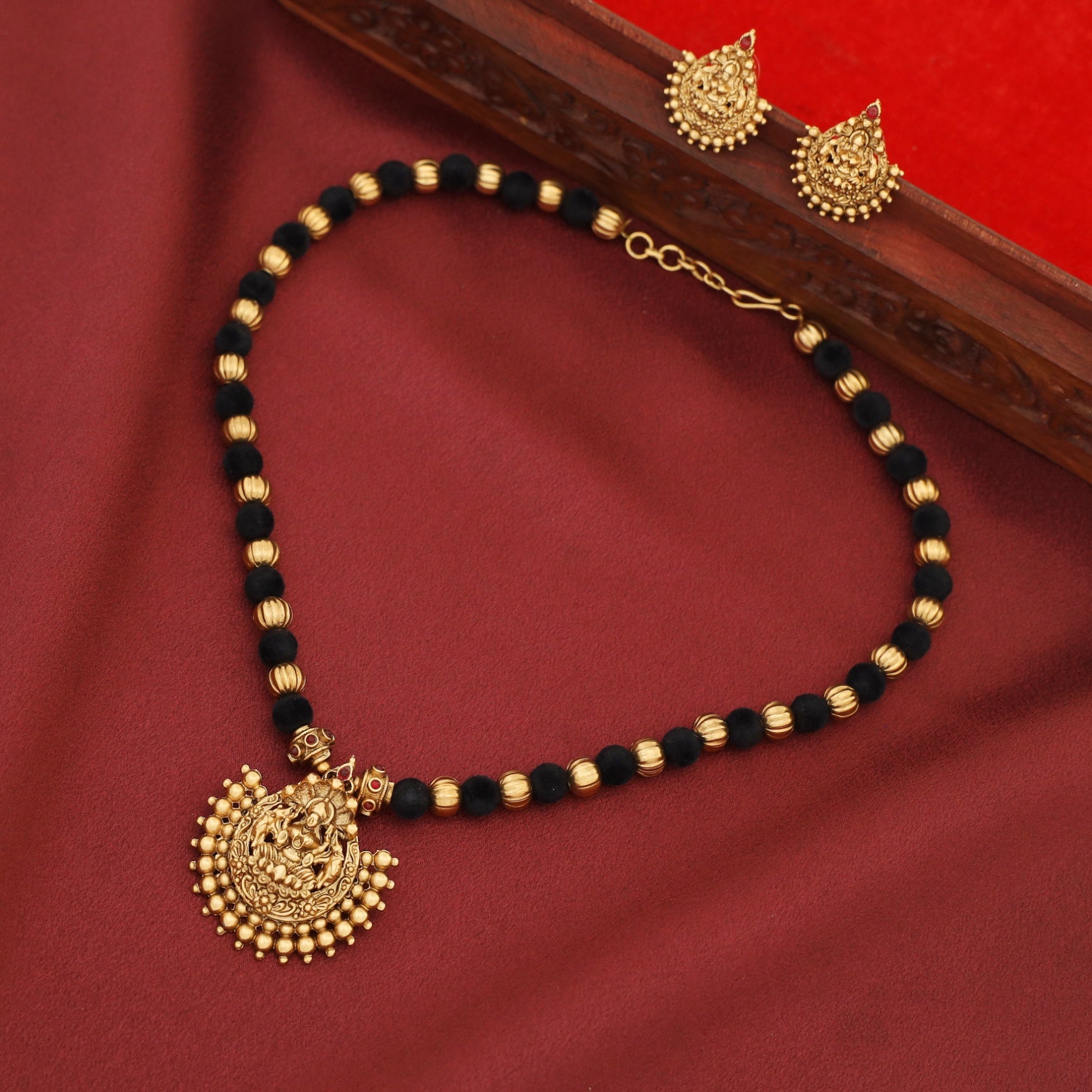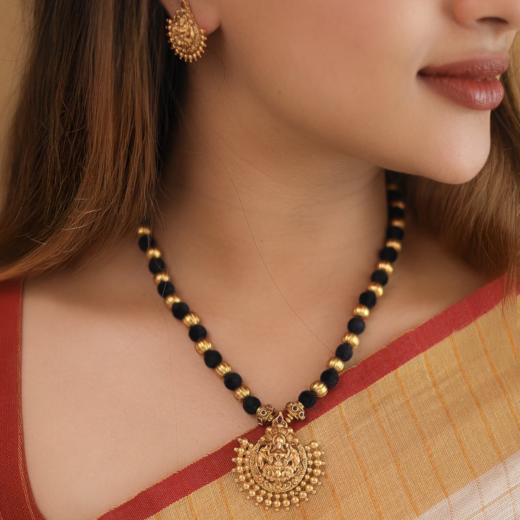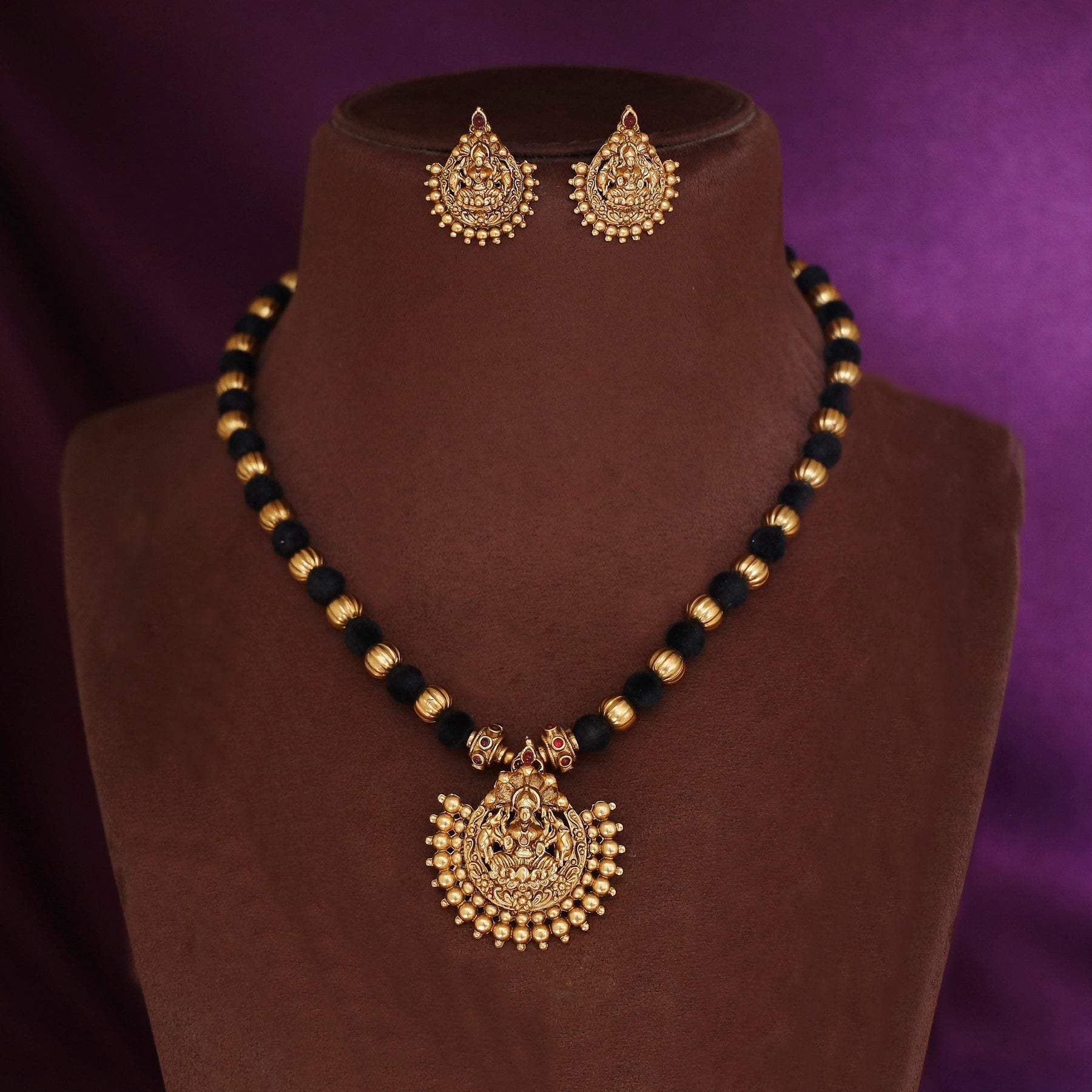 Anandalakshmi Golden Velvet Ball Neckpiece With Earring