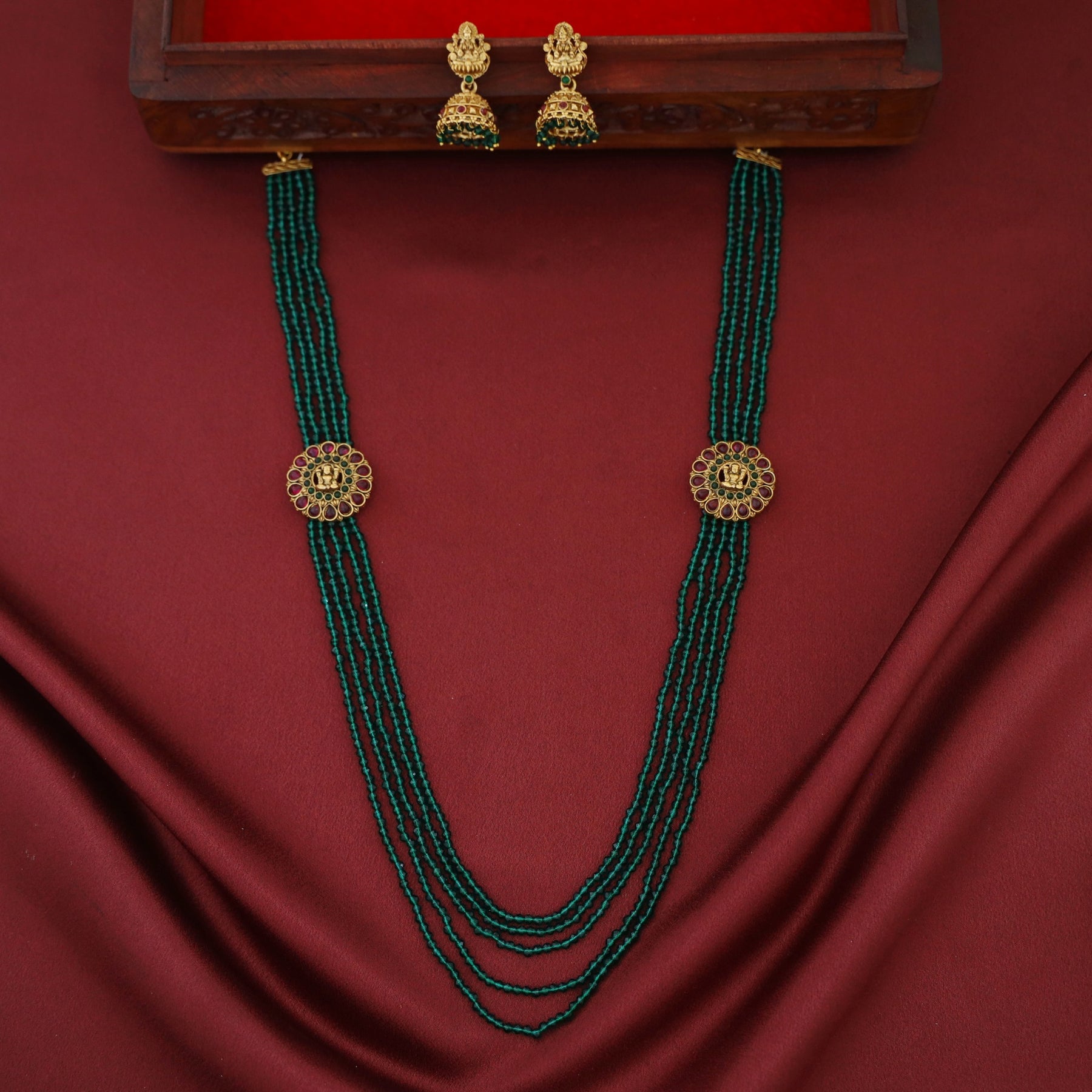 Yukta Beaded 5 Layer Nishitha Devi Flower Long Neckpiece With Earring