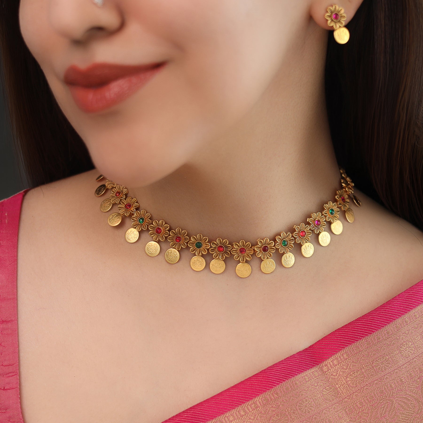 Dhrithika Flower Dhaya Kashi Short Neckpiece with Earring