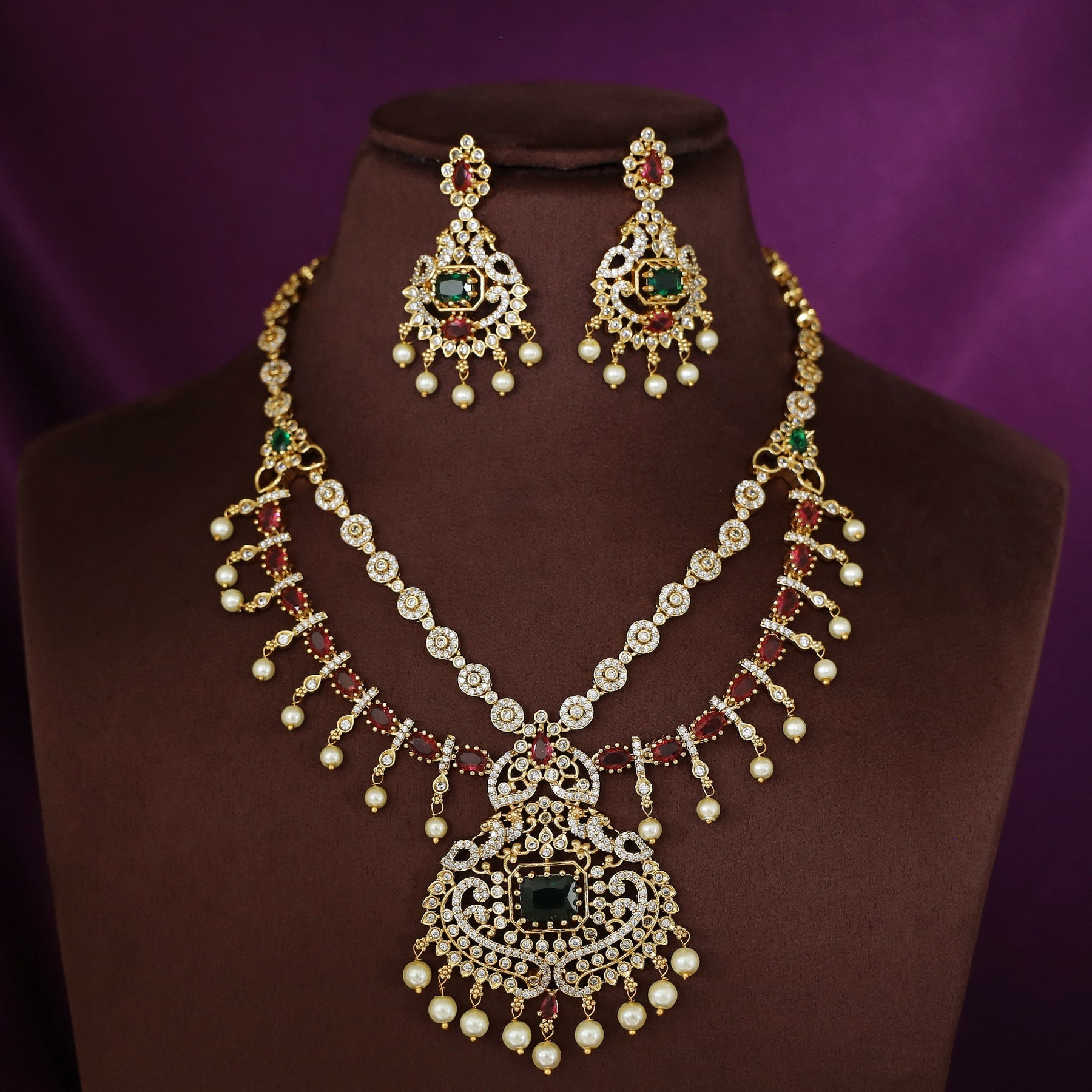 Ishiha AD Stone 2 Layer Bridal Set Neckpiece with Earring