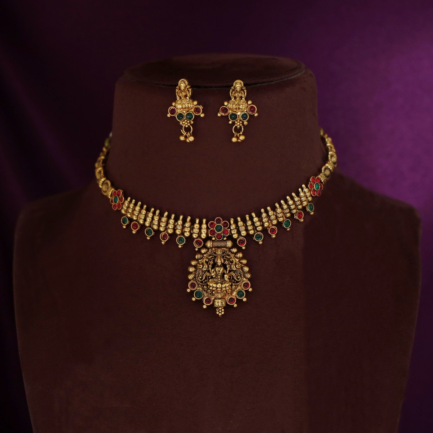 Lakshmi Bud Flower Neckpiece with Earring