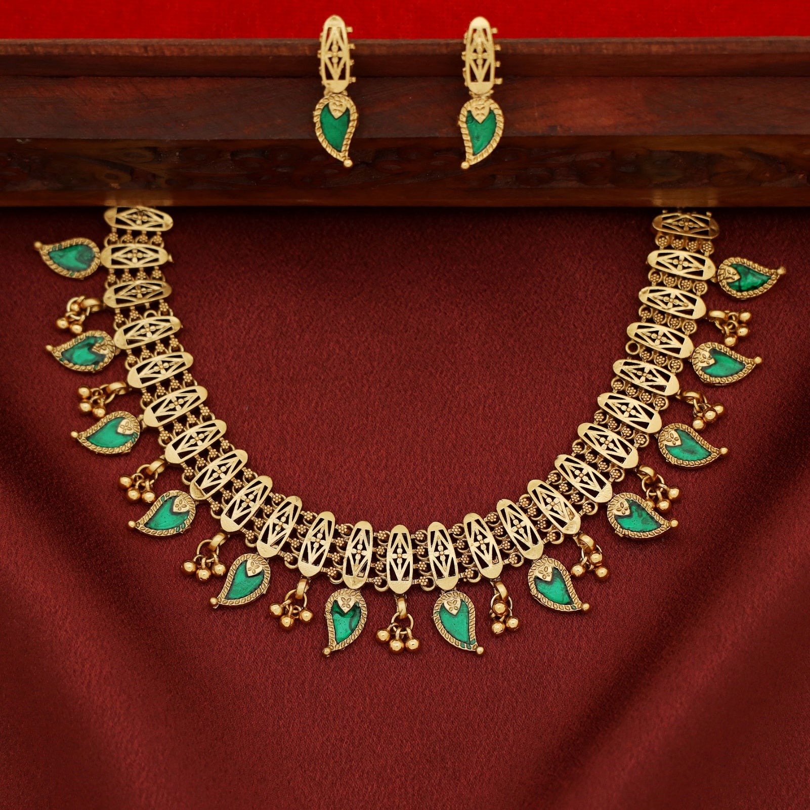 Mishika Enamel Mango Palakka Short Neckpiece With Earring