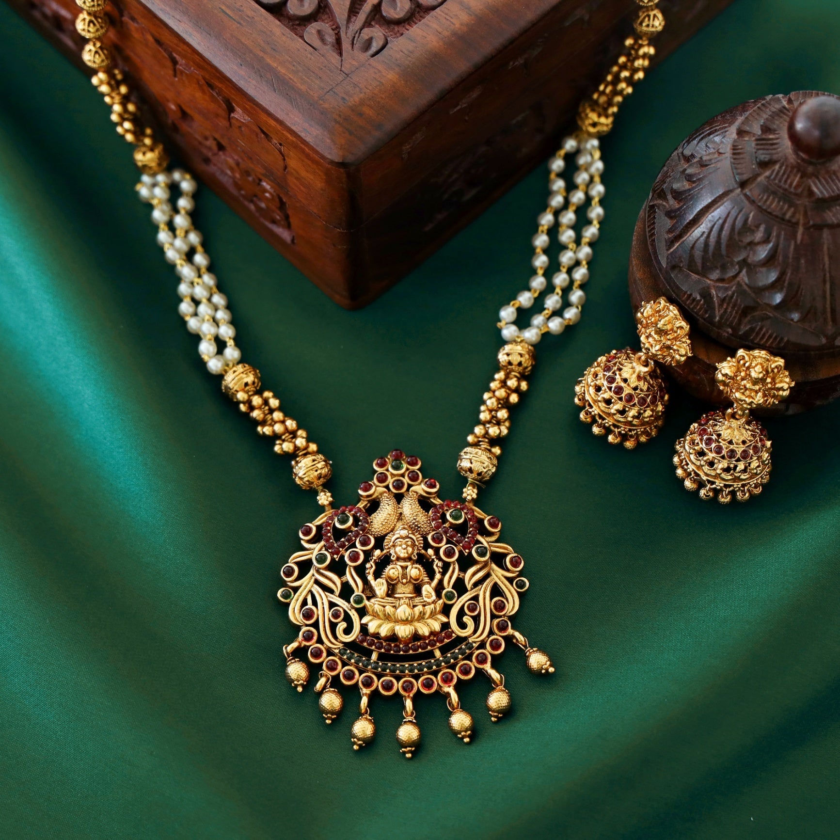 Rukmini Devi Pearl Ball Pendant Neckpiece With Jhumka
