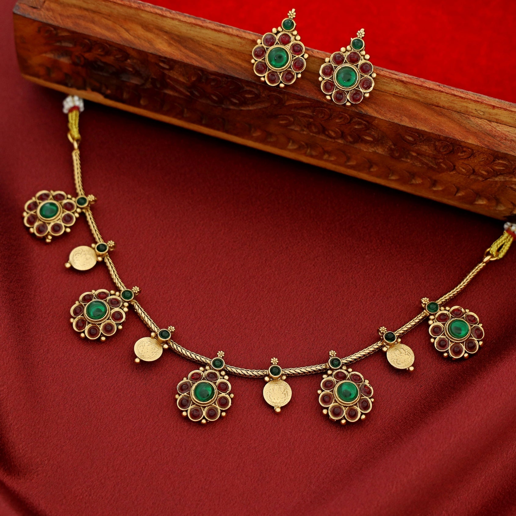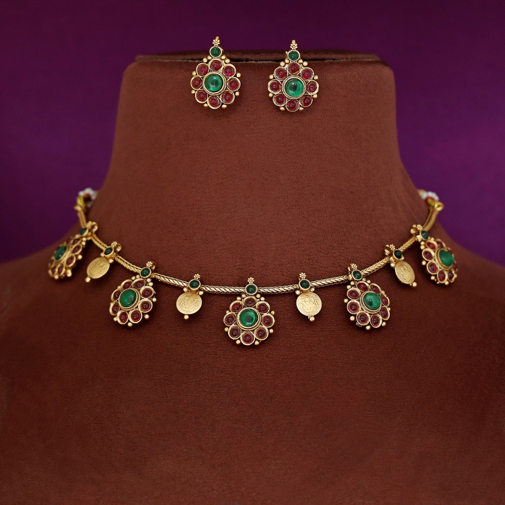 Sreelekha Floral Mini Kashi Short Neckpiece With Earring