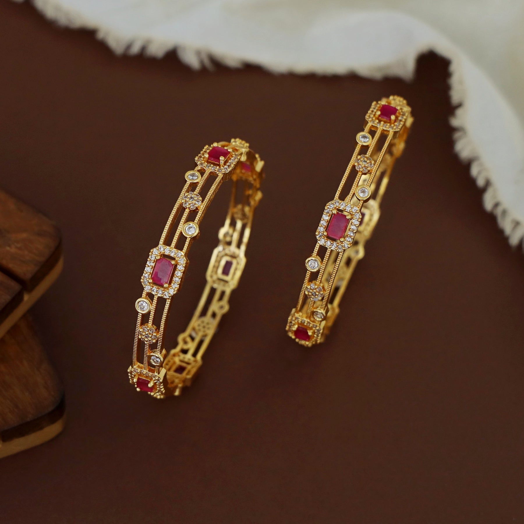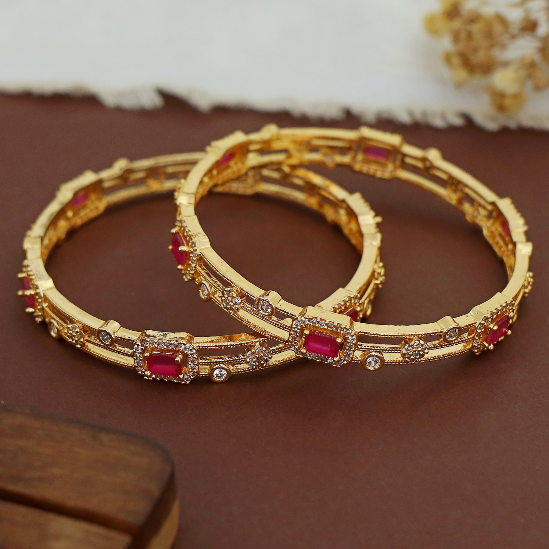 Yukta AD Stone Rectangle Glossy Bangle (Set Of 2)