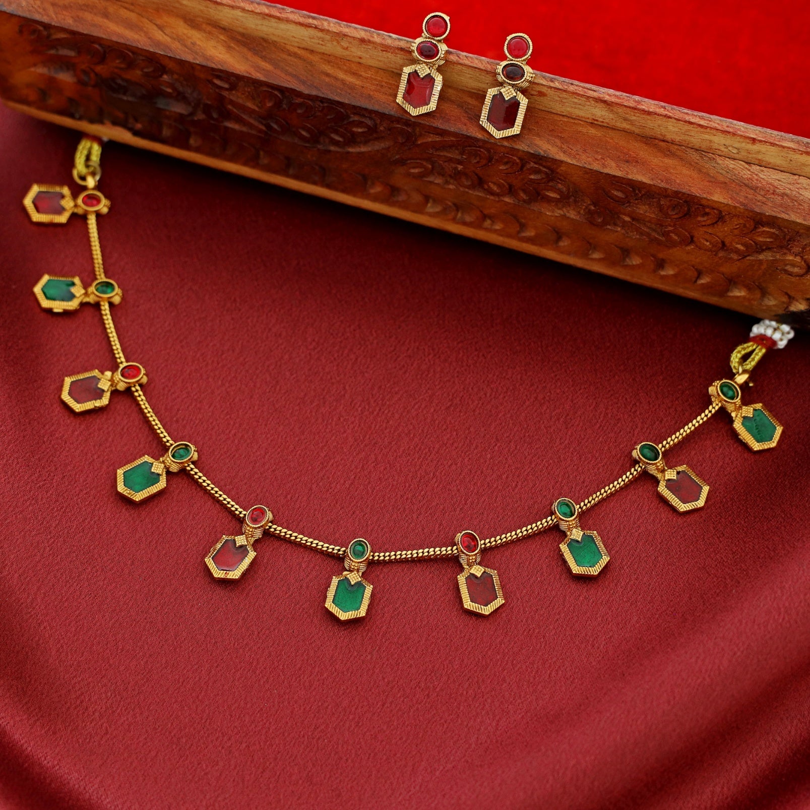 Alaka Golden Enamel Short Neckpiece With Earring