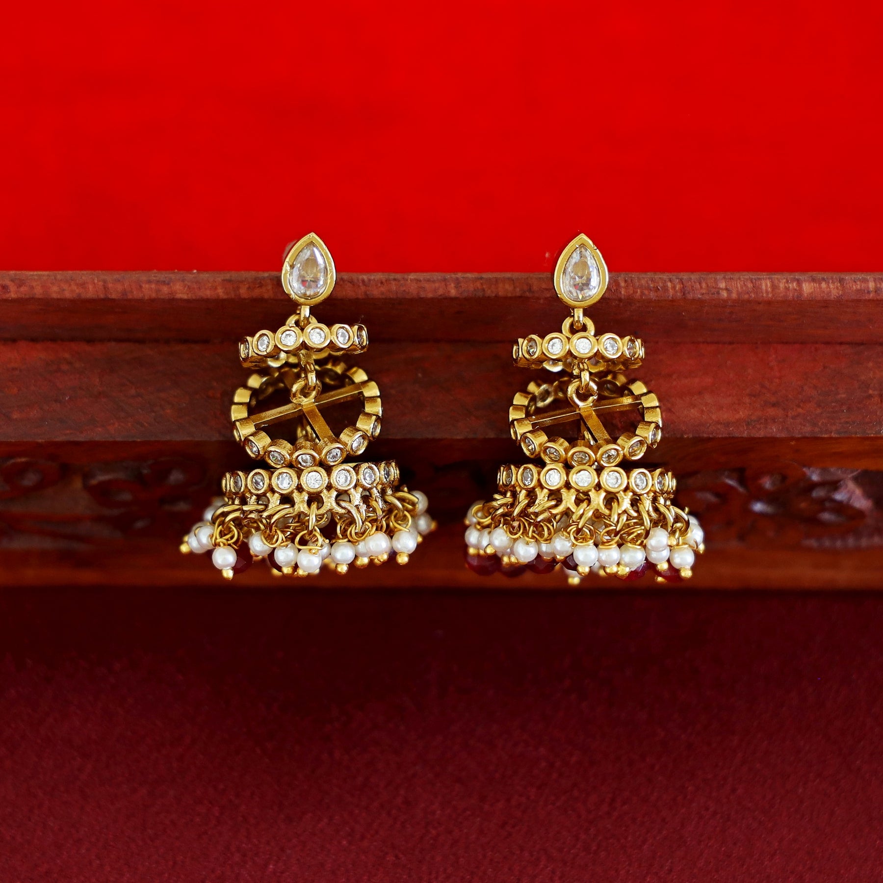 Premium Beaded Drop Stiff Wings Short Neckpiece With Earring