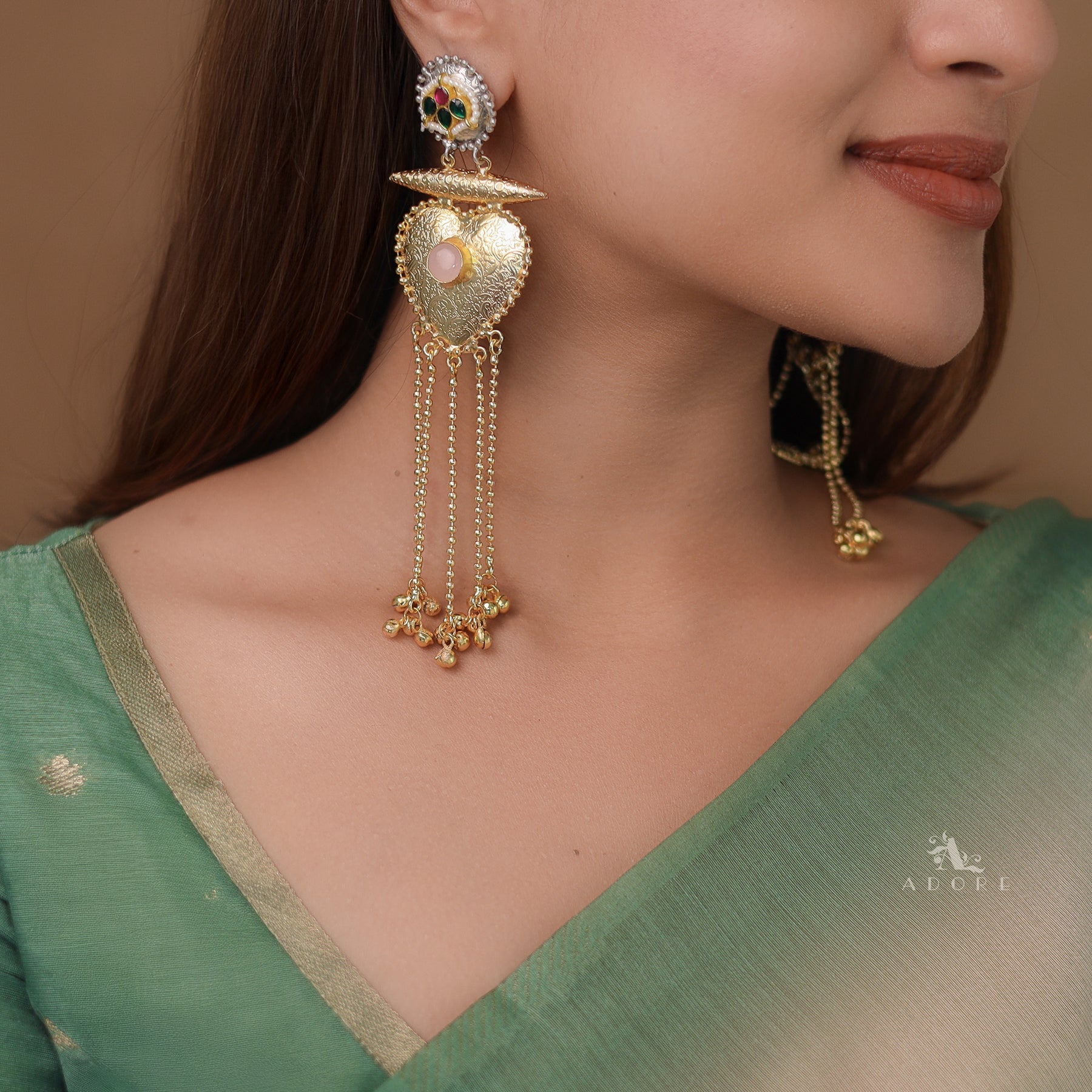 Ishani Dual Tone Heart Ghunguroo Hanging Kashmiri Earring