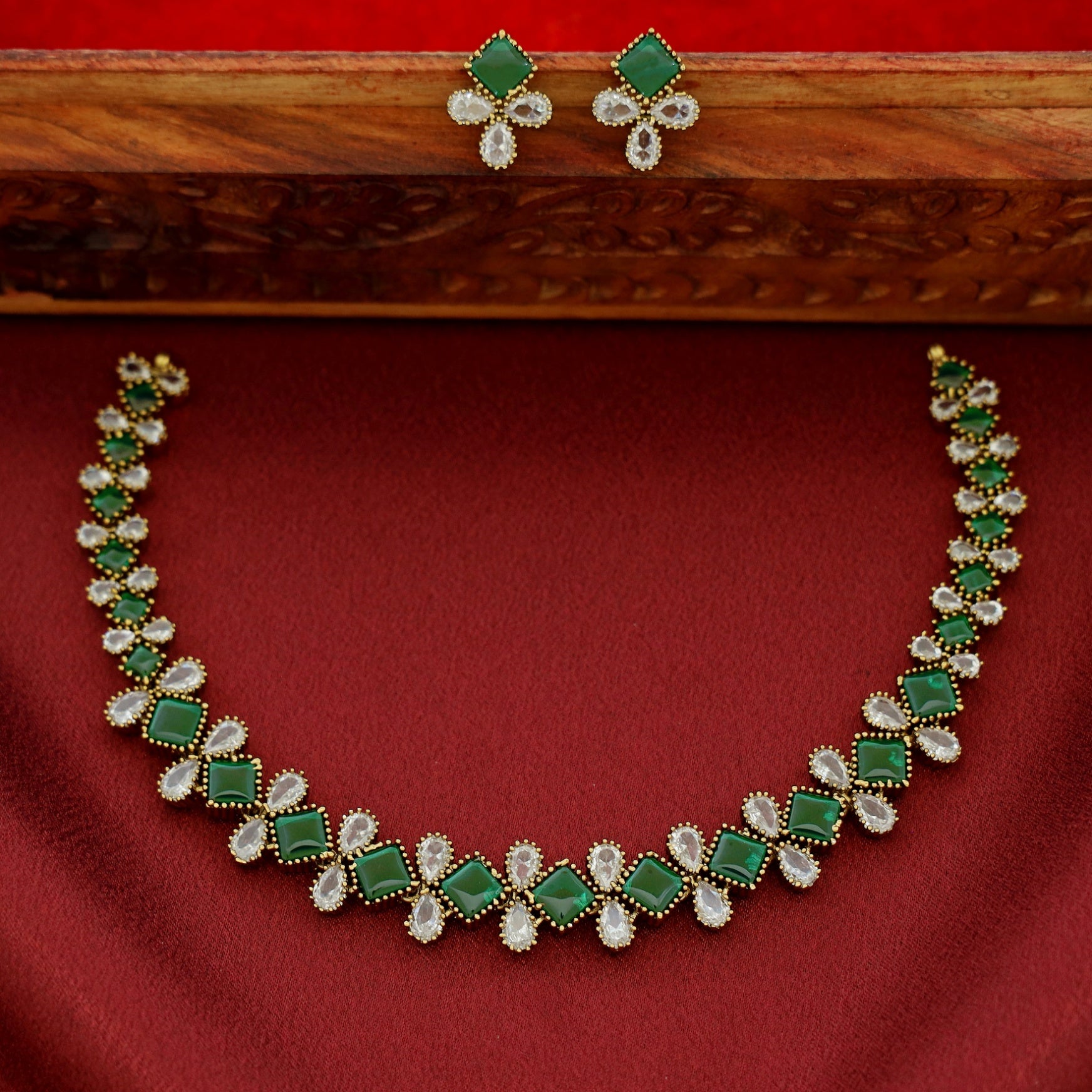Ritvika Kemp Stone Short Neckpiece With Earring